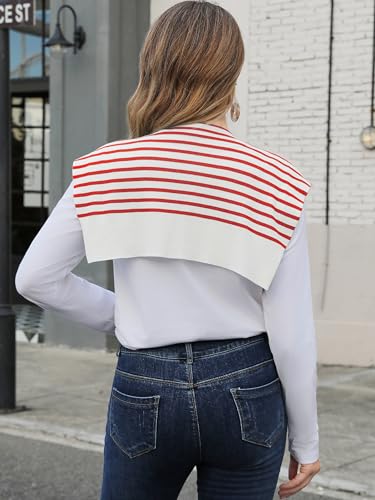 Women’s Knitted Sweater with Sleeves Wrap Scarf Lightweight Striped Shawl Cardigan Cape Wraps Over the Shoulder Sweaters 5