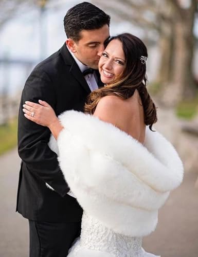 BEAUTELICATE Faux Fur Shawl Bridal Wrap Winter Wedding Stole Bridesmaids Cover Up Women Shrug 1