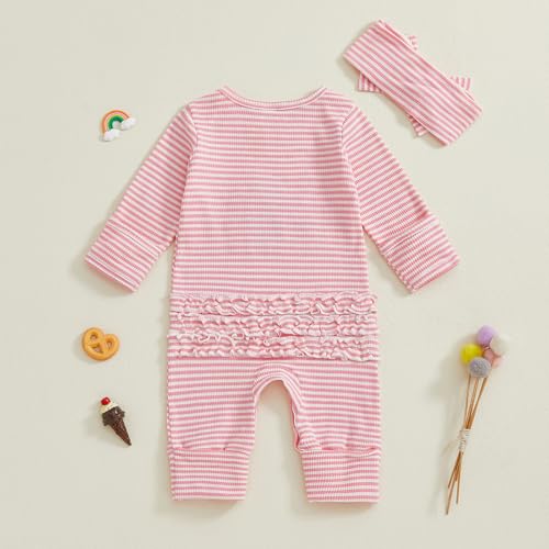 • Design: Baby sister newborn outfit, hi im new here baby girl outfit, baby rompers girl, ''Little Sister'' ''Hello,I'm New Here'' letters print, striped design, ribbed knit, full length, ruffle trim, round neck, long sleeve romper jumpsuit, matching bowknot headband set, super cute newborn baby coming home outfit girl