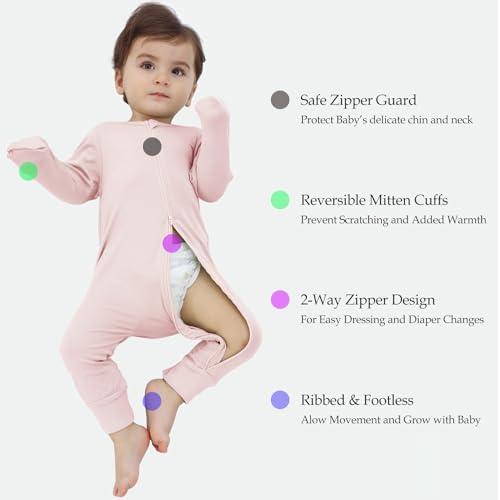 Rayon from Bamboo Baby Pajamas, Baby Sleeper with Mitten Cuffs and 2 Way Zipper, Rompers for Baby Boy Girls 0-24 Months 6