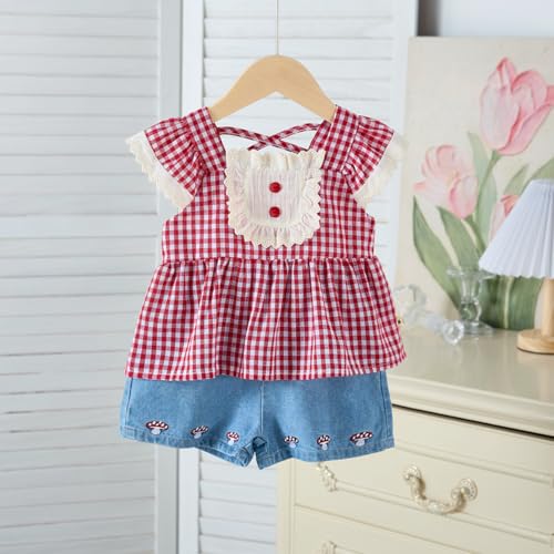 HOT ! Baby Girl Summer Plaid Top & Denim Shorts Outfit Set - Ideal for 6M - 3T