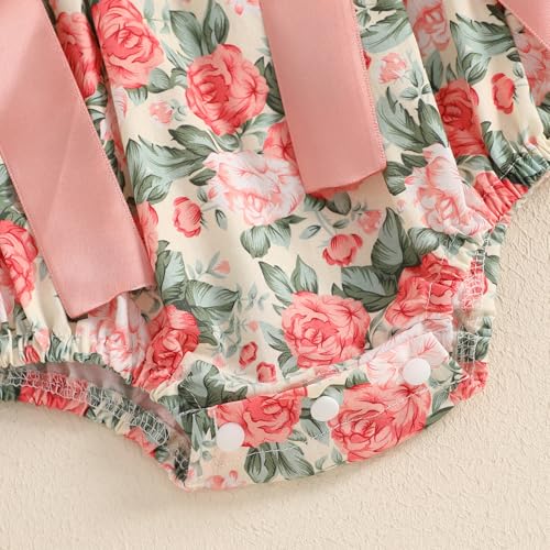 Bagilaanoe Summer Outfit Infant Baby Girl Clothes Ribbon Floral Short Sleeve Romper Bodysuit Jumpsuit Headband Set 4