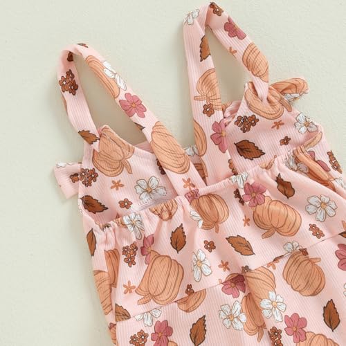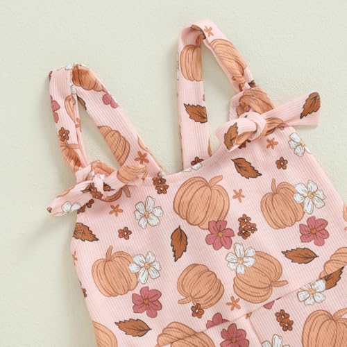 Kayotuas Toddler Baby Girl Halloween Outfit Jumpsuit Sleeveless Floral Pumpkin Ghost Bell Bottom Romper Overalls Fall Clothes 7