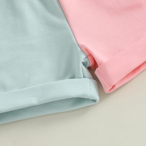 WZTYYDS Toddler Girl Summer Clothes Letter Print Short Sleeve Round Neck T-Shirt with Contrast Color Shorts Outfit 7