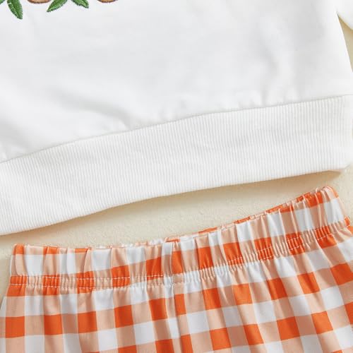 Toddler Baby Girl Halloween Outfit Pumpkin Embroidery Long Sleeve Sweatshirt Tops Plaid Flared Pants Set Fall Clothes 5