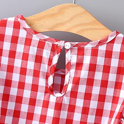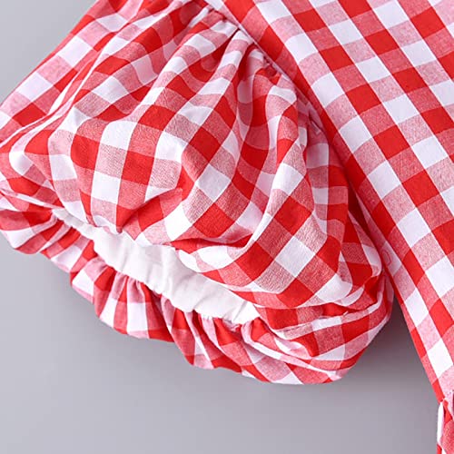 Toddler Baby Girls Plaid Blouse Pleated Crew Neck Short Sleeve Shirts Infant Smocked Peplum Summer Tops Casual Clothes 4