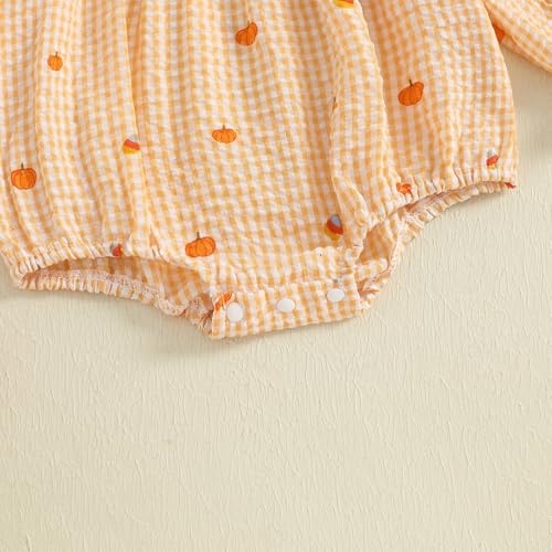More information about Newborn Infant Baby Girl Halloween Outfit Clothes Smocked Pumpkin Ghost Embroidery Romper Plaid Bubble Bodysuit