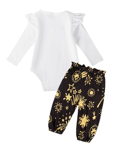 My First New Years Baby Girl Outfit Ruffle Long Sleeve Top Party Gift Pattern Pants Headband 3 Piece Set 2