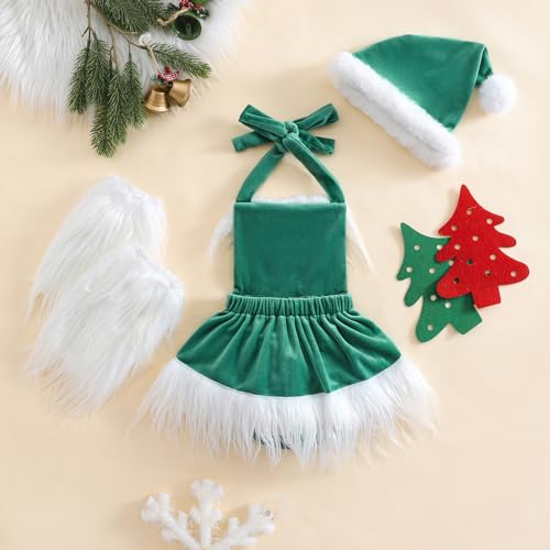 Baby Girl Cute Sequin Sleeveless Halter Romper Dress with Leg Warmer Hat Infant Newborn Christmas Outfit 4