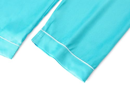 • Features: These comfy and soft silky jammies feature smooth material, light blue background color, notched collar, a front pocket on the short sleeves button up pajama shirt. Stretchy elastic waist band comes in the matching pants for on-and-off convenience. This sleepwear is the perfect gift for a Secret Santa party, birthdays, Thanks Giving Day, Christmas, flower girls or junior bridesmaids.
