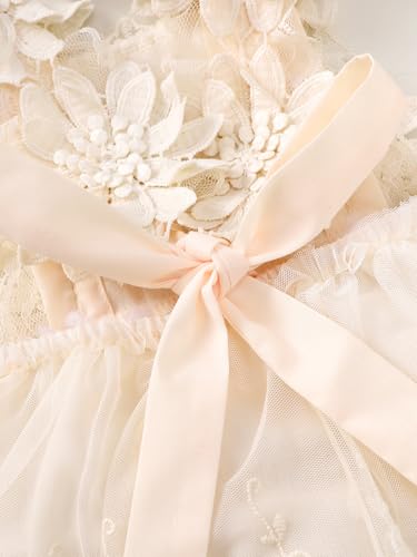 Baby Girl 1st Birthday Outfit Boho Lace Tulle Romper Cake Smash Princess Dress with Headband 6