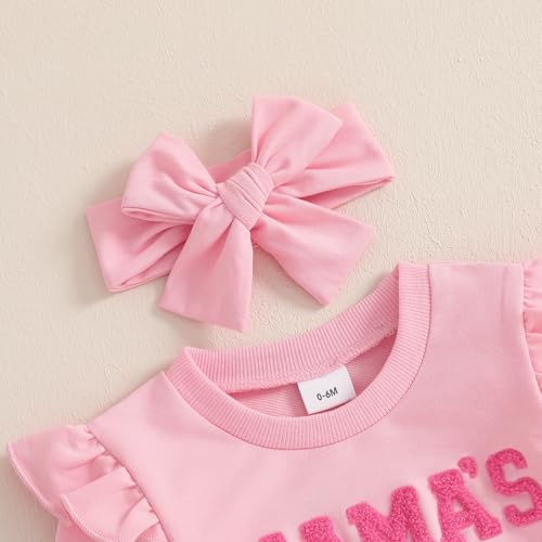 Toddler Baby Girl Outfits Letter Print Flying Sleeve Sweatshirt with Heart Pattern Pants Headband 3