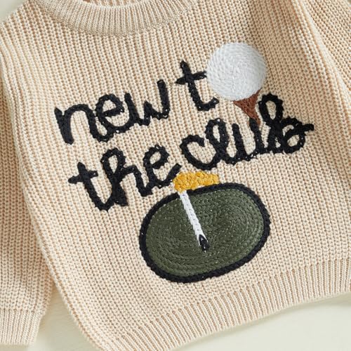 Baby Boy Girl Golf Sweater New to The Club Embroidery Long Sleeve Knit Pullover Sweatshirt Toddler Game Day Clothes 3