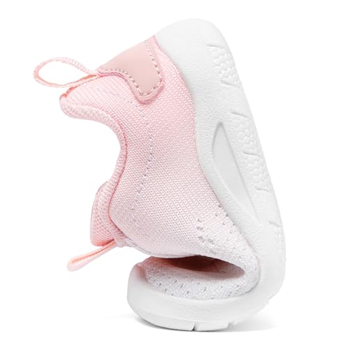 MORENDL Toddler Slip On Sneakers Baby Walking Shoes Non-Slip Breathable Unisex Pink Mesh Lace-Up Athletic Sneakers Infant Running Shoes 5
