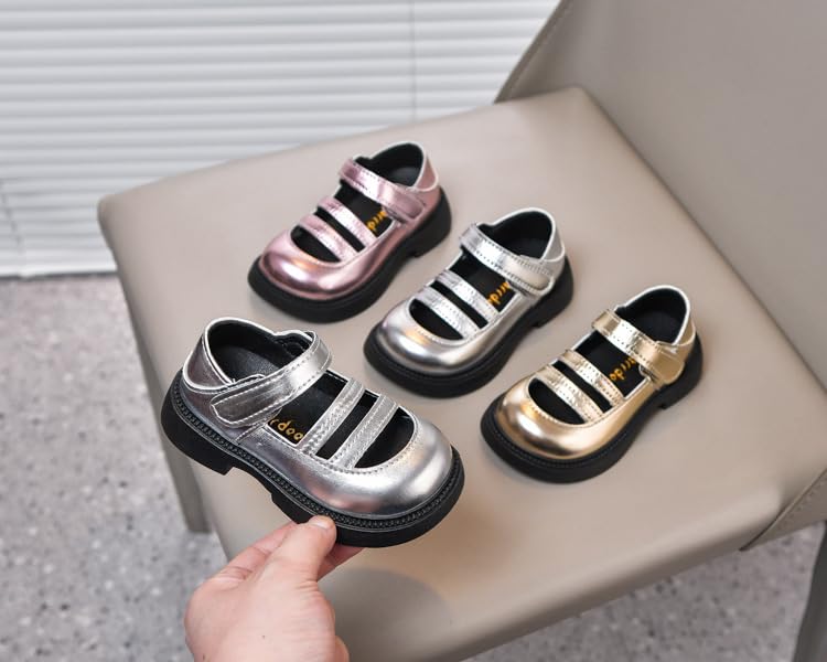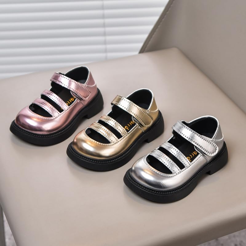 Toddler Girls Mary Jane Flats Sandals Little Girls Dress Shoes with Strap Wedding Party Princess Shoes,Gold,Toddler Size 6 1