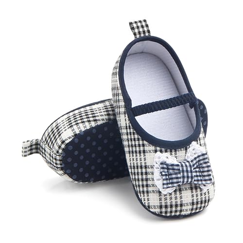 Baby Girls Slipper First Walkers Elastic Band Bow Decoration Princess Black Grid Fashion Cute Crib Shoes 12-18 Months 6