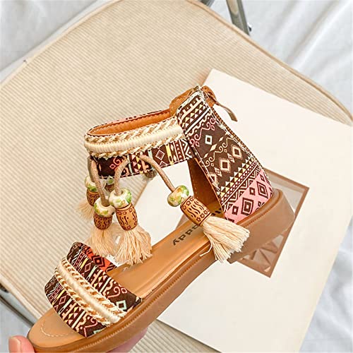 Girls Sandals Girls Open Toe Sandals Stilettos Fashion Tassel Ankle Strap Pumps Back Zip Little Girls Sock 6