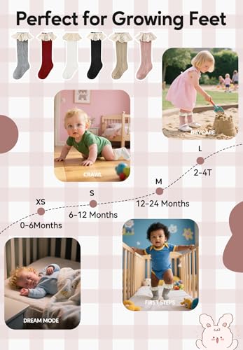 • Ultra-Soft & Breathable: Our baby knee high socks made with 80% cotton and stretchy elastic blend, stitched in a seamless way without rubbing kids' delicate skin, these socks gently hug your baby's feet without irritation, perfect for sensitive skin.