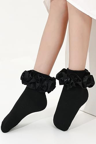 Baby Girls Double Lace Socks with Big Ruffle for Toddlers and Kids 6