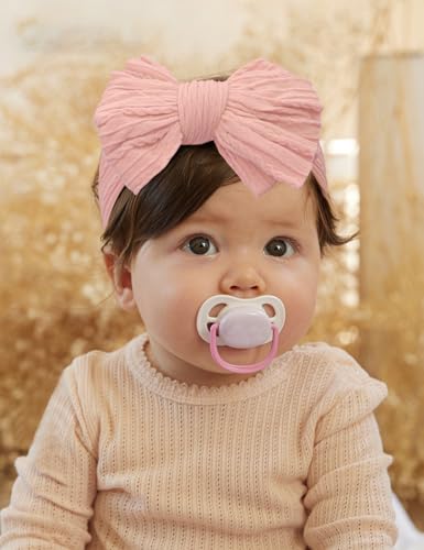 6 Pack Nylon Headbands with Stretchy Infant Bows, Pink Head Wraps for Newborns and Toddlers (03H-10) 4