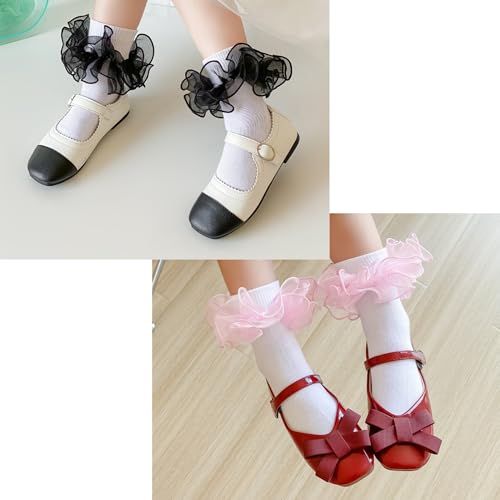 • Cute Design:Baby girls' lace ruffle socks are crafted from cotton and soft breathable lace fabric, featuring double-layered large ruffled lace that adds a touch of cuteness and elegance. These socks perfectly accentuate special occasion dresses and Mary Jane shoes with ease.