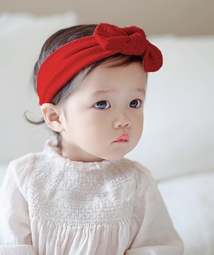 Cute Bow Baby Girl Headband Soft Stretch Cotton Head Wrap with Knots Tied Wide Nylon Turban for Newborn Infant Toddler Shower Birthday (Red B, Elastic) 6