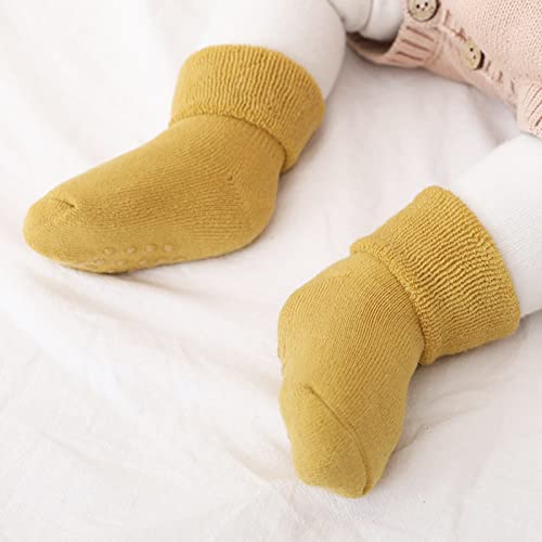 Ehdching 6 Pack Toddler Baby Girls Warm Thick Grips Socks Infant 0-3T Cotton Non Slip Turn Cuff Slipper Socks 6