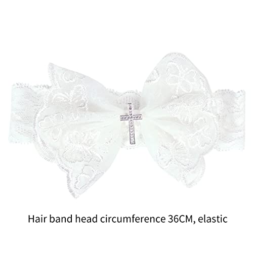 Baby Headbands, White Cute Baby Lace Headbands with Bow, Pearl Rhinestone Headbands Elastic Hair Band for Toddler Girls 6