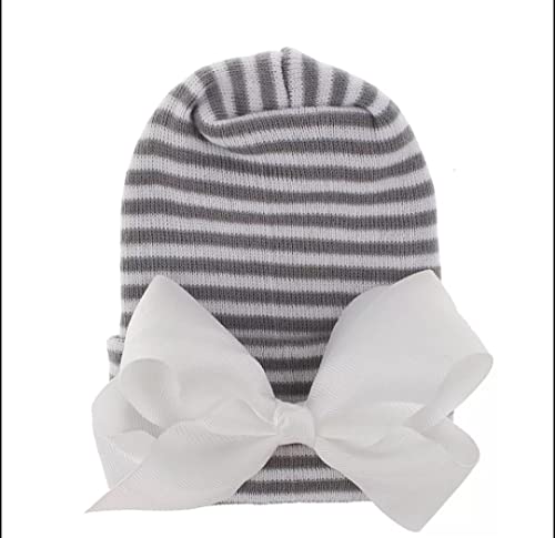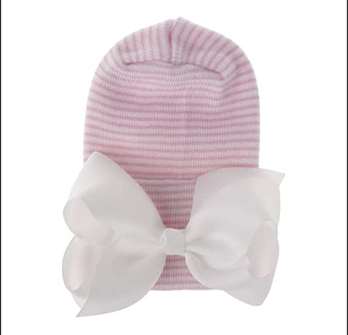 HOT ! Newborn Hospital Hat with Bow/Baby Bow Beanie Hat/Unique Newborn Baby Hat/Perfect for Hospital Photo (Pink Hat Pink Bow)
