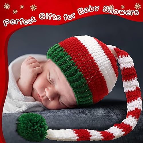 2 Pieces Baby Christmas Long Tail Hat Pom Knitted Crochet Christmas Tree Beanie with Pom Winter Warm Santa Hat for Newborn Baby Photography Photo Props 5