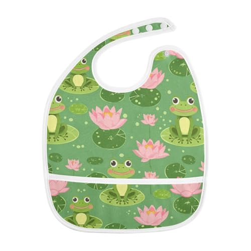 MCHIVER Frogs Lotus Baby Bibs for tag1 Waterproof Feeding Bib Apron with Food Cather Adjustable Cotton Food Eating Bib 2 Pack 6