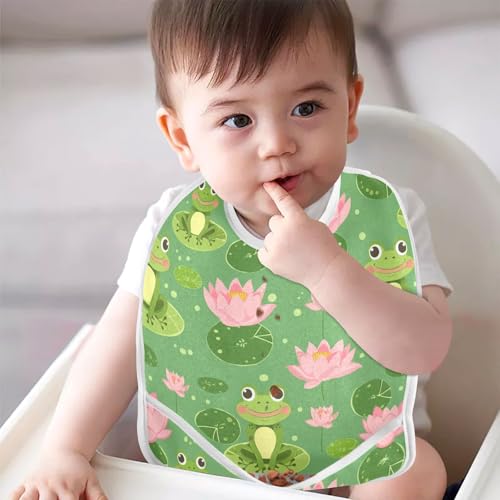 MCHIVER Frogs Lotus Baby Bibs for tag1 Waterproof Feeding Bib Apron with Food Cather Adjustable Cotton Food Eating Bib 2 Pack 5
