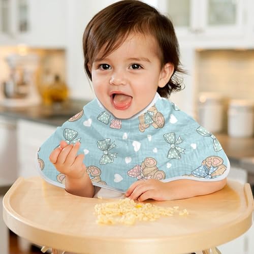 2 Pack Muslin Burp Cloths Teddy Bear Bow Blue Cotton Baby Burp Cloths Ultra Absorbent and Soft Thick Burping Cloth for Newborn Babies Boys Girls, Large 22" x 11" 4