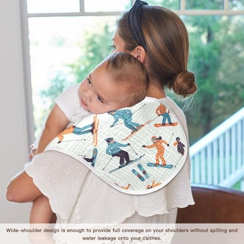 2 Pack Muslin Burp Cloths Skiing Winter Cotton Baby Burp Cloths Soft Burping Cloth Absorbent Spit Up Rags for Newborn Babies, Large 22" x 11" 5