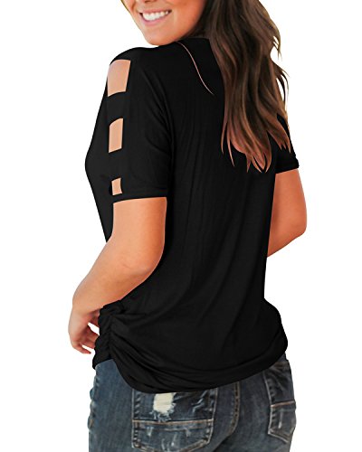 Jescakoo Women's Short Sleeve Cut Out Cold Shoulder Tops Deep V Neck T Shirts 5
