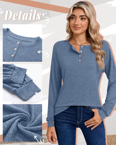 Riyiper 3 Pack Women's Long Sleeve Henley Tops, V Neck Button Up Tunic Top Casual Shirts Loose Fit T Shirts Pullover Tunics 5