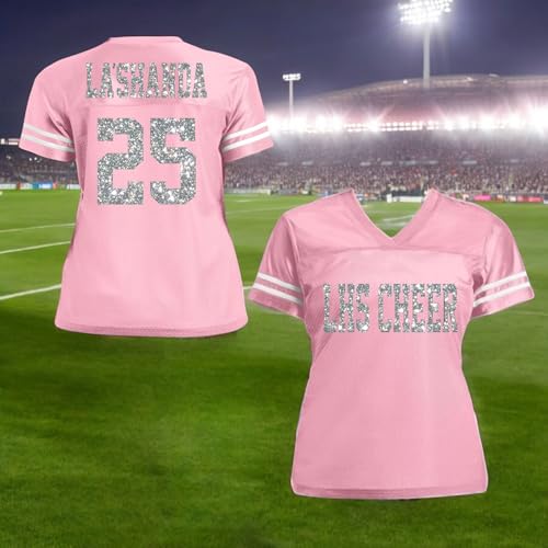 Gold & Red or Customize Colors School Name Glitter Women's Football Jersey Shirt, Cheer or Dance Team Bling Top, Mom or Coach 9