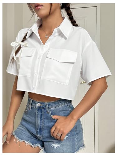 More information about MakeMeChic Women's Cropped Button Down Shirt Collar Short Sleeve Pocket Crop Tops