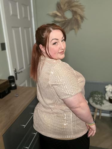 CARCOS Plus Size Sequin Top for Women Short Sleeve Party Blouse Evening Sparkle Shimmer V Neck Glitter Shirt Ladies XL-5XL 6