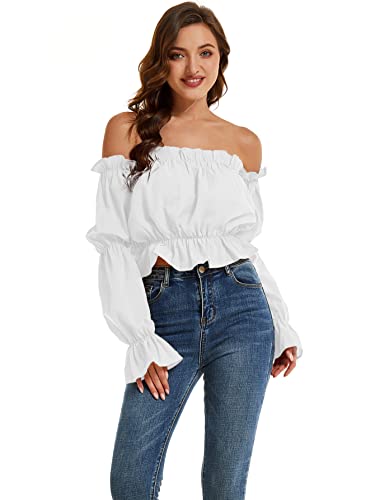 More information about LYANER Women's Off Shoulder Ruffle Trim Puff Long Sleeve Tube Crop Blouse Shirt Top
