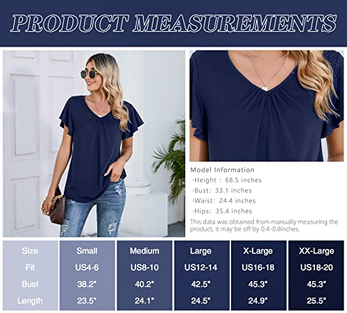 • Features: Cute ruffle short sleeves, loose fit, special shirred V-neck, pleated shirts, flattering on any body type. So this cute ruffle sleeve top is also a great gift for family and friends.