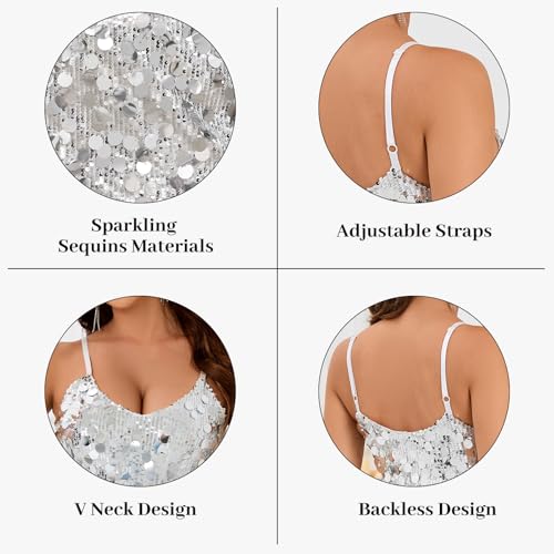• Occasion: This women's sequin top is perfect for casual outings, disco,prom,cocktail parties, vacations, homecoming,clubs, concert, night out.silver tank top/going out top/sequin top/sparkle top/concert top/club top