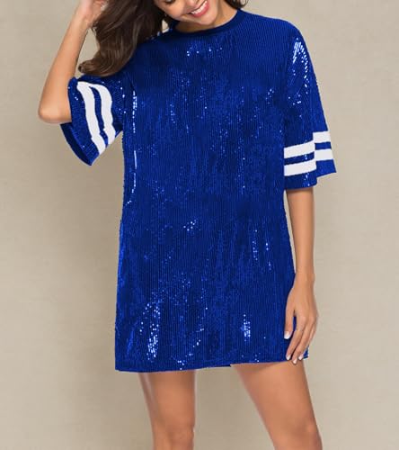 More information about Women's Sparkly Sequin Short Sleeve T-Shirt Dress Casual Loose Cute Tunic Blouse
