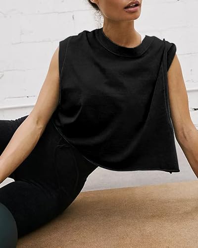 HUGOOME Women Workout Tank Tops Oversized Crop Sleeveless Tee Loose Fit Boxy Basic Yoga Active Summer T Shirts Gym 2025 5
