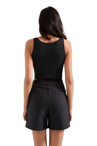 SUUKSESS Women Cotton Ribbed Summer Going Out Tops Padded Sleeveless Trendy Tank Tops Basic Square Crew Neck Top (Black, Medium) 4