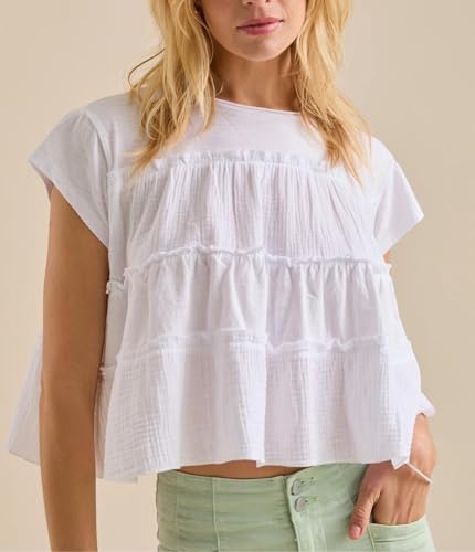 • Material: This ruffled babydoll tops for women is made of soft and high-quality cotton fabrication. It is also breathable and skin-friendly, which will make you soft in summer.