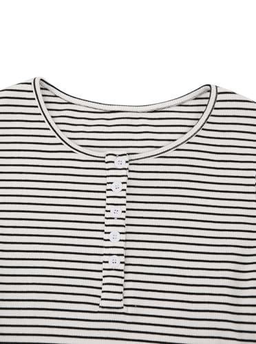 LilyCoco Womens Striped Shirt Ribbed Long Sleeve Crewneck Basic T Shirts 6