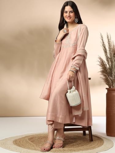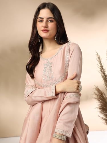 More information about Womens Kurta Set Silk Blend Party Wear Embroidered A-Line Kurta Pant with Dupatta