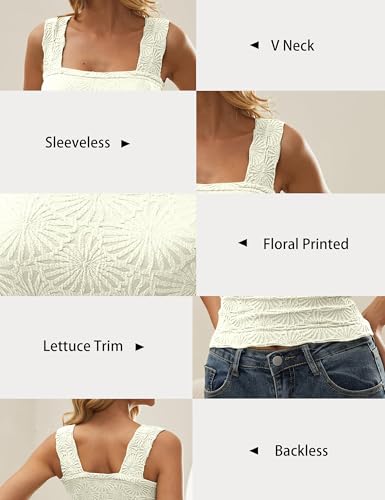 • [Match]: Square neck floral textured crop tank vest for women, perfect to match with high waist jeans, skinny leggings, tight pants, shorts and cute skirts, also a versatile sleeveless backless wide strap cropped camisole top in women closet.