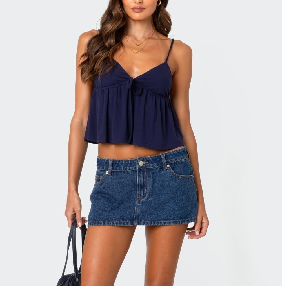 HOT ! Babydoll Tops for Women Cute Spaghetti Strap Front Tie Tank Top Summer Going Out Flowy Hem Cami Tops